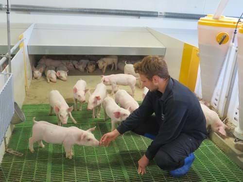 A line system has been installed under the slats. This means that straw can be used, which will eventually make it possible to switch to producing boars and pigs with their tails intact. In addition, there is slurry cooling, which provides a sustainable heat source for the new climate-controlled barn.