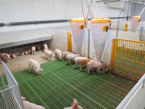 The floor slats are plastic environmental slats that cover almost 50 per cent of the floor area.
